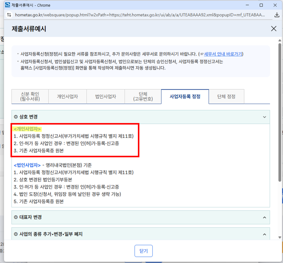법인사업자도 홈택스에서 업종 추가 가능한지?