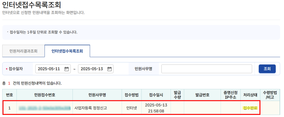 업종 코드를 아시면 베스트.. (선택이 아주 빠름)