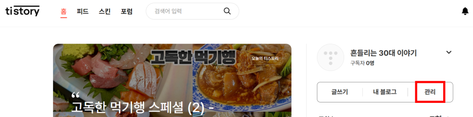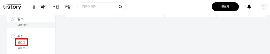 왼쪽 하단에 [관리] 탭에서 [블로그]를