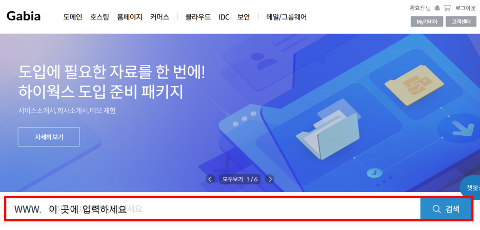 '가비아' 사이트에서 받은