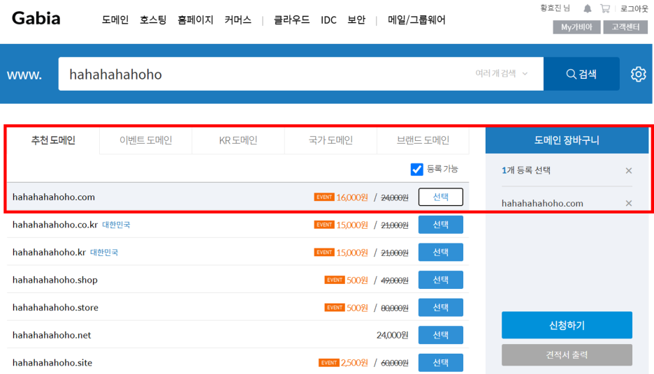 아래 www. ~ 칸에 원하시는 주소를 입력해 보세요.