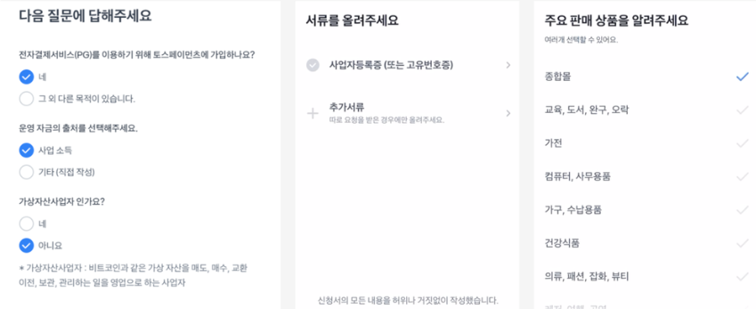 토스페이먼츠를 통한 pg가입이 가능하고