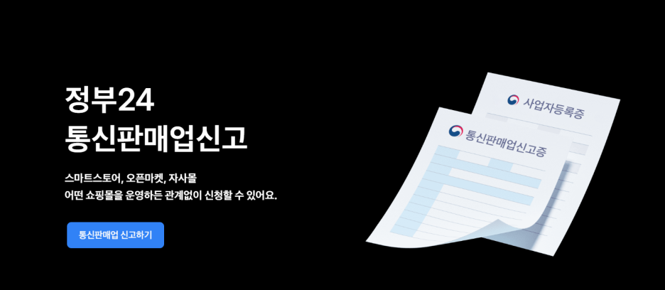 왼쪽 상단의 사업시작 -> 통신판매업 신고 클릭
